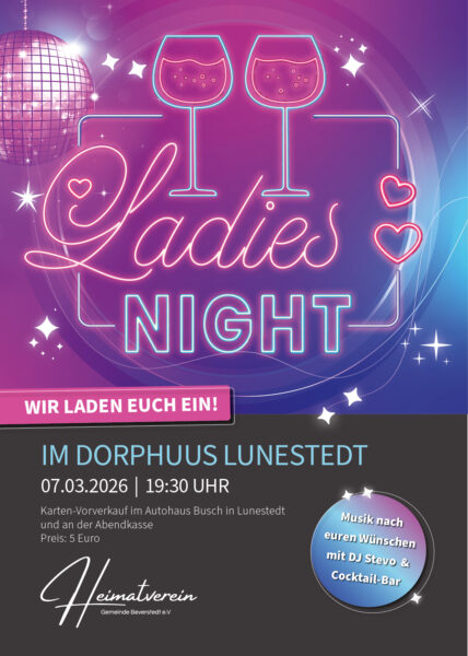 Ladies Night im Dorphuus am 7. März 2026 ab 19:30 Uhr